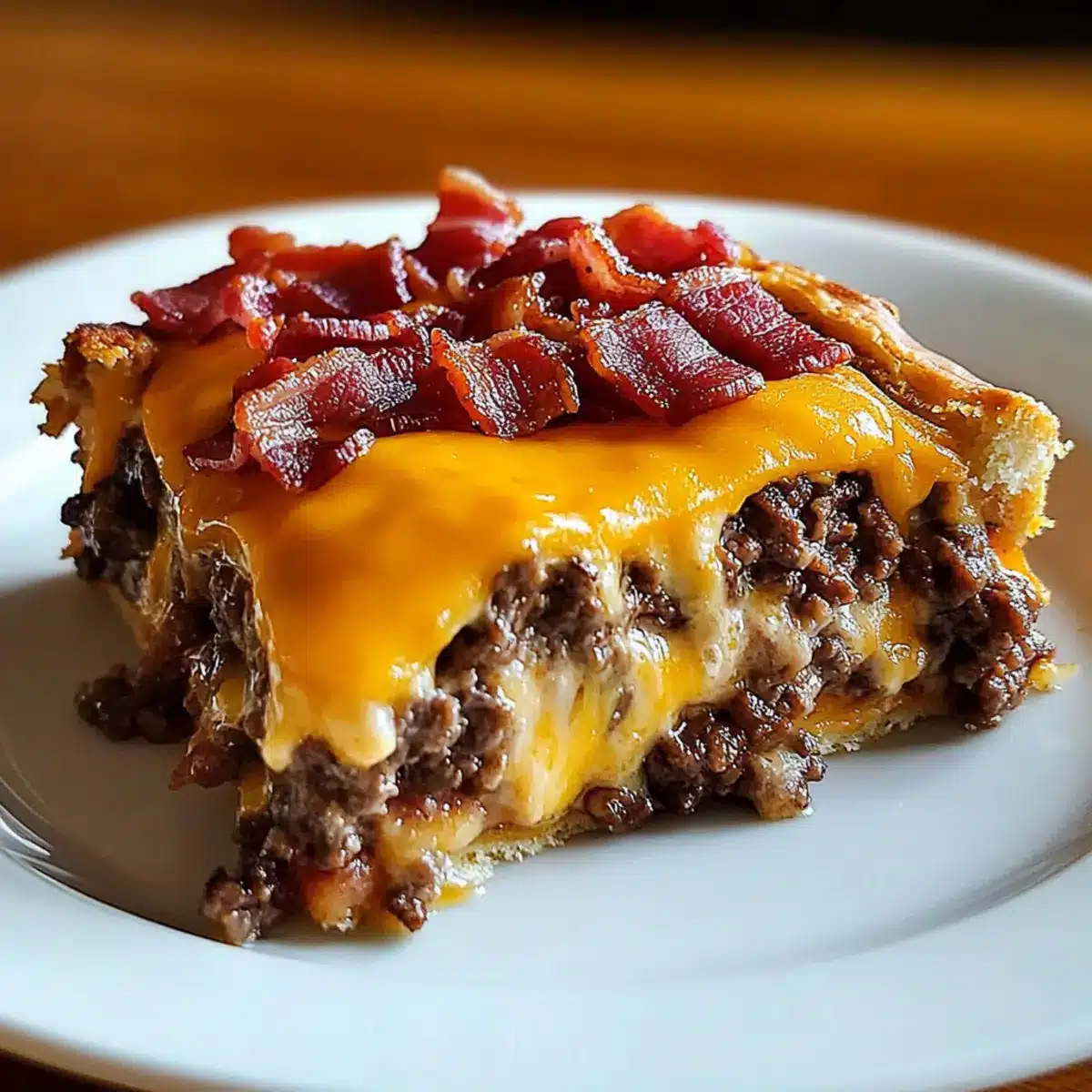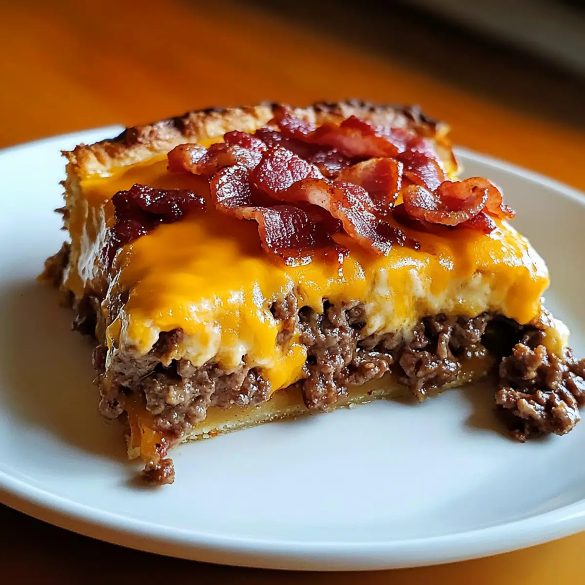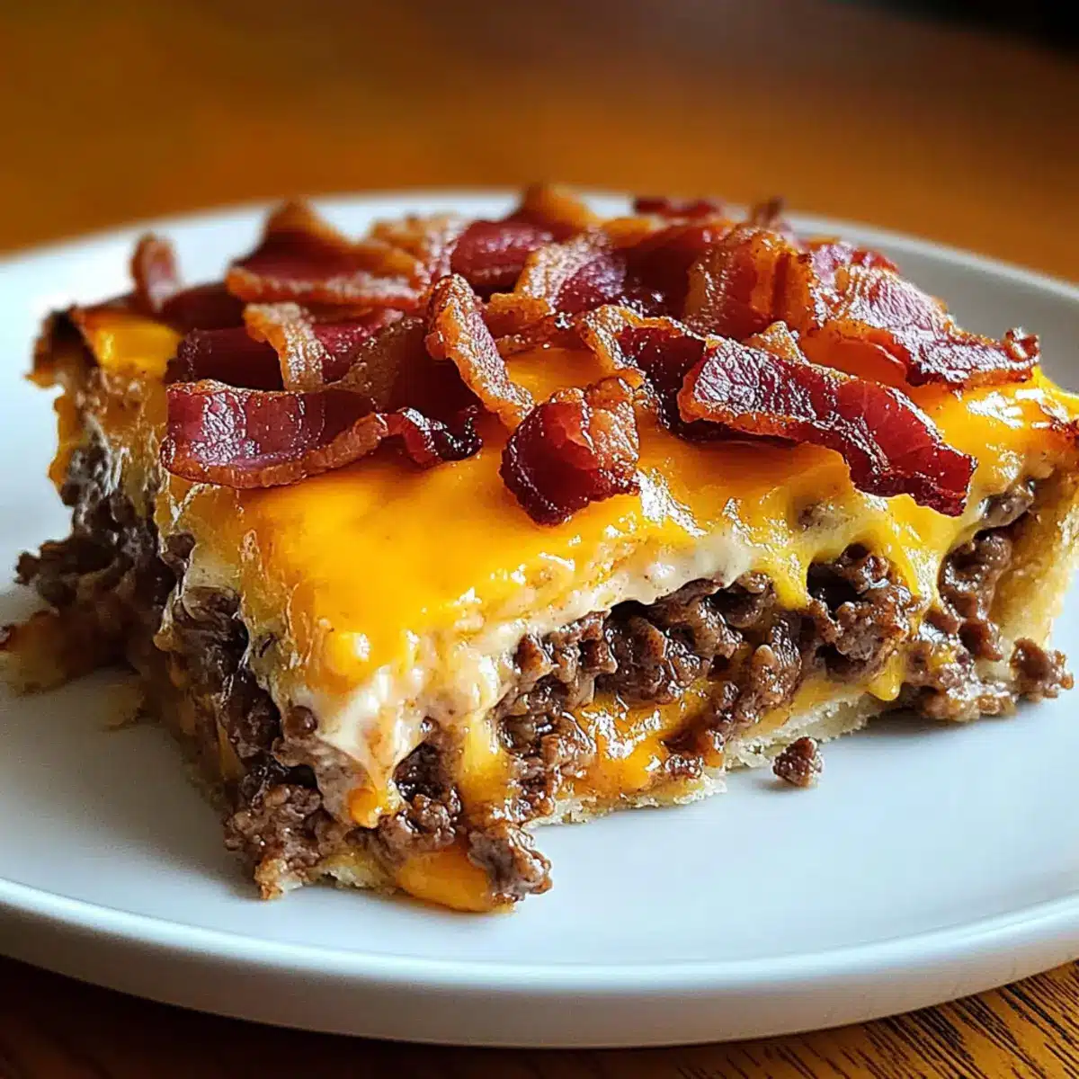 Savory Indulgence: This Bacon Cheeseburger Pie combines crispy bacon, juicy beef, and melted cheese for a flavor explosion!