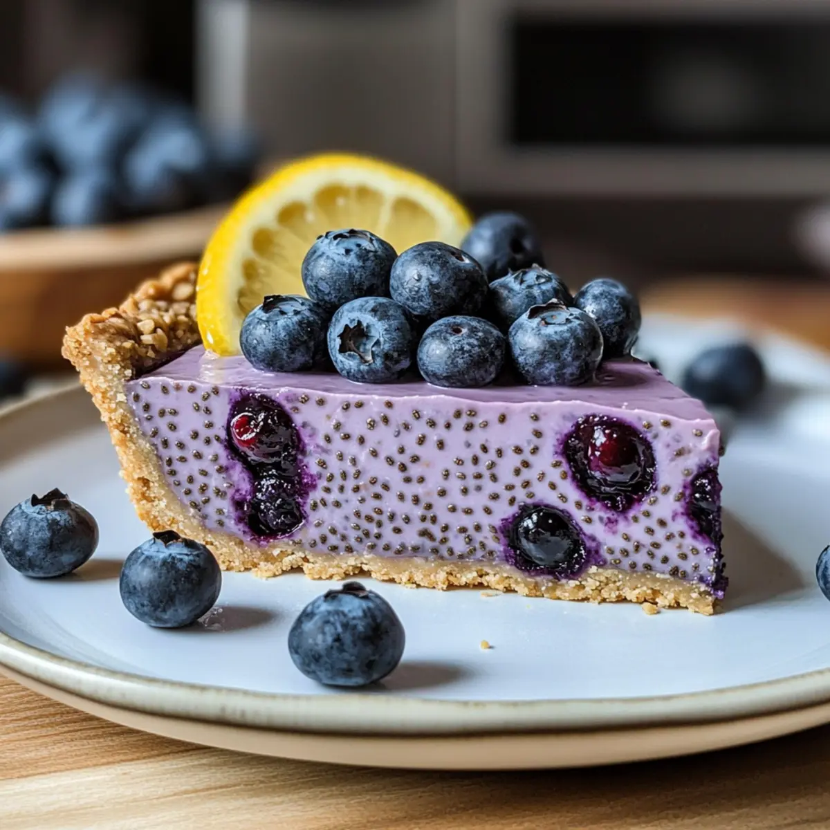 Once set, remove the pie from the refrigerator and garnish with fresh blueberries, lemon zest, or a sprinkle of mint leaves for a pop of color. Slice the pie with a sharp knife for clean edges and serve chilled. This beautiful Blueberry Chia Seed Pie is perfect for sharing and will surely impress your guests!