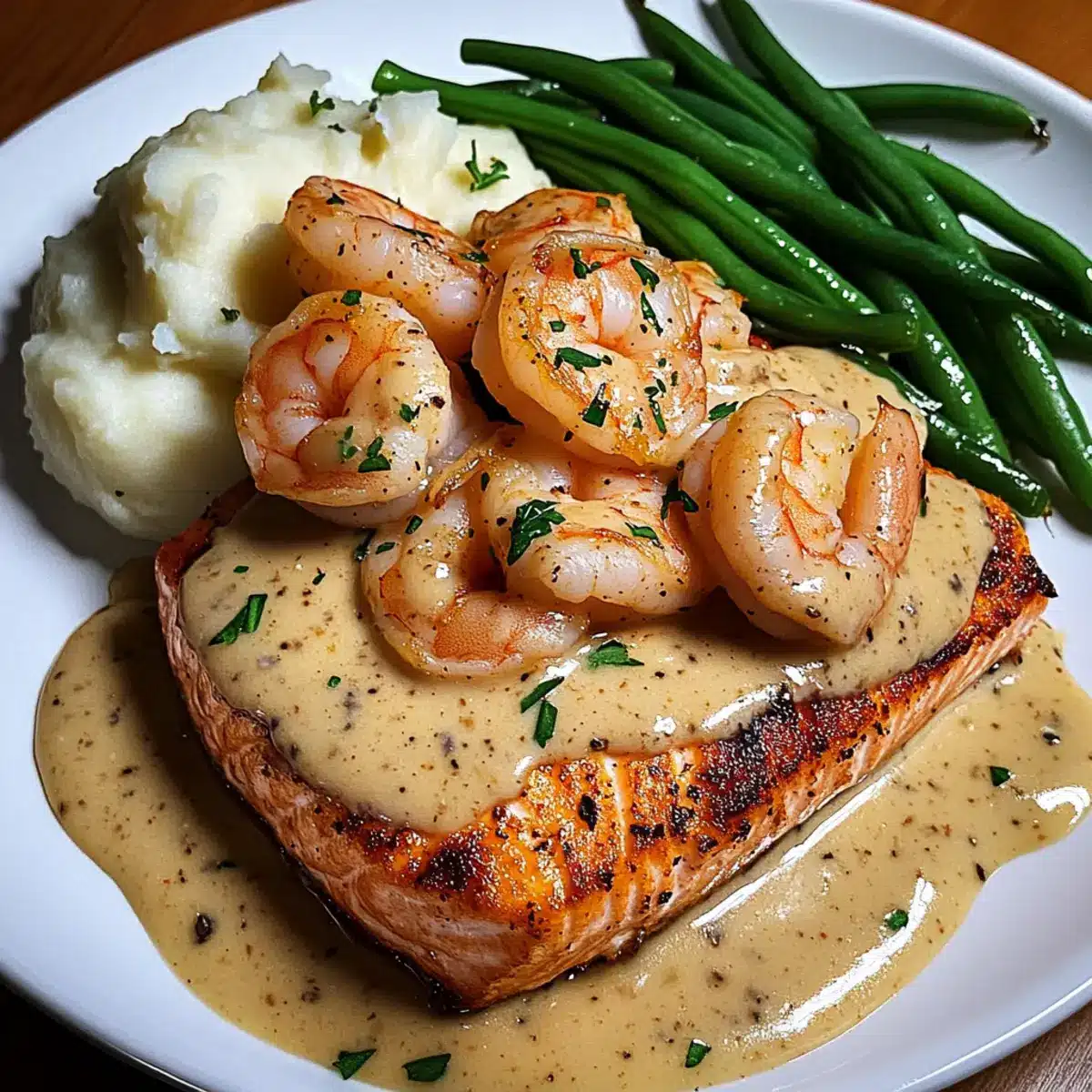 As I stood in my kitchen, the aroma of sizzling garlic and fragrant Cajun spices filled the air, instantly transporting me to a lively New Orleans kitchen. Today, I’m excited to share my recipe for Cajun Shrimp and Salmon with Garlic Cream Sauce. This delightful dinner not only impresses with its vibrant flavors, but it’s also a comforting twist on seafood that’s simple to whip up after a long day. Picture tender, succulent shrimp and flaky salmon all enveloped in a rich, creamy sauce, served alongside buttery mashed potatoes and bright green beans. It’s a dish that brings people together and makes any meal feel special—ideal for dinner parties or a cozy night in. Are you ready to bring a taste of Cajun magic to your table? Let’s dive in!