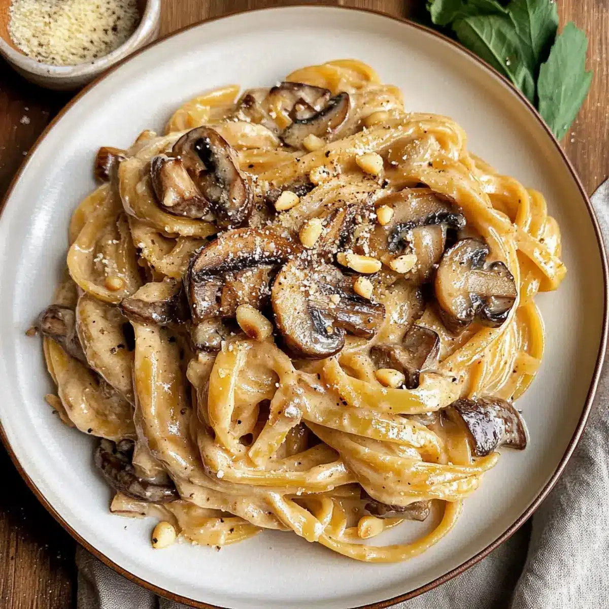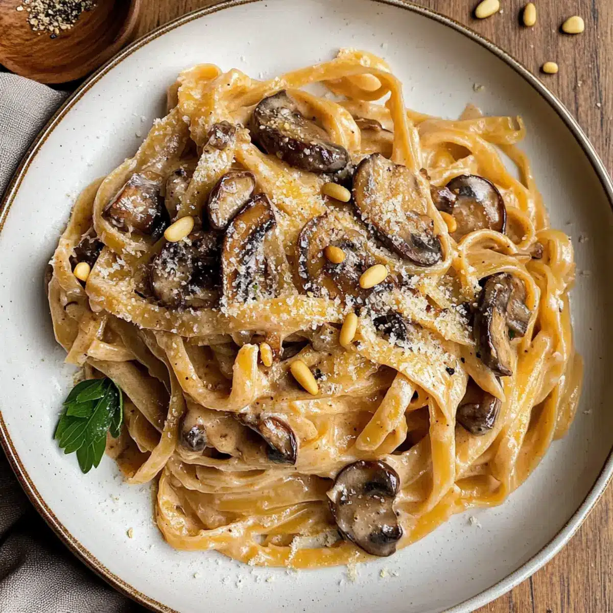 Portion the creamy caramelized leek and mushroom gruyere pasta into bowls. Garnish each serving with toasted pine nuts for added flavor and texture. Serve immediately while hot, ensuring that the delightful essence of the dish entices everyone around the table!