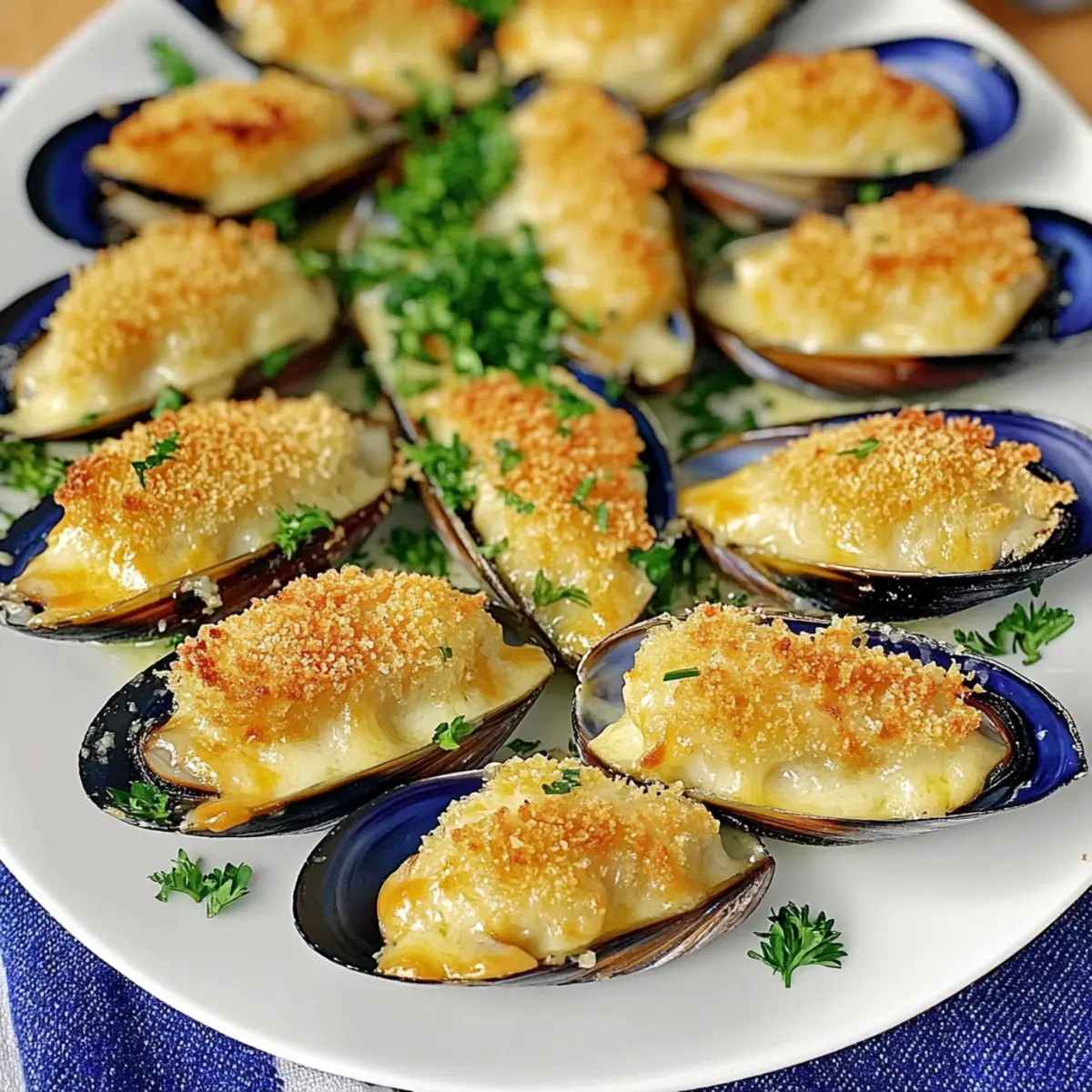 Savory Stuffed Baked Mussels with Creamy Garlic Sauce