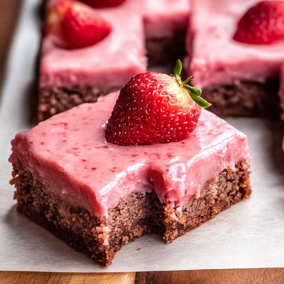 Fudgy Strawberry Brownies with Sweet Strawberry Icing
