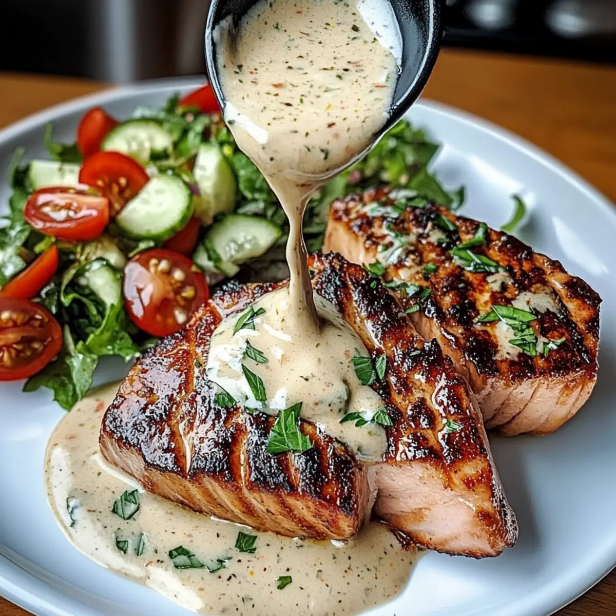 Tuna Steaks with Creamy Garlic Sauce & Salad in No Time