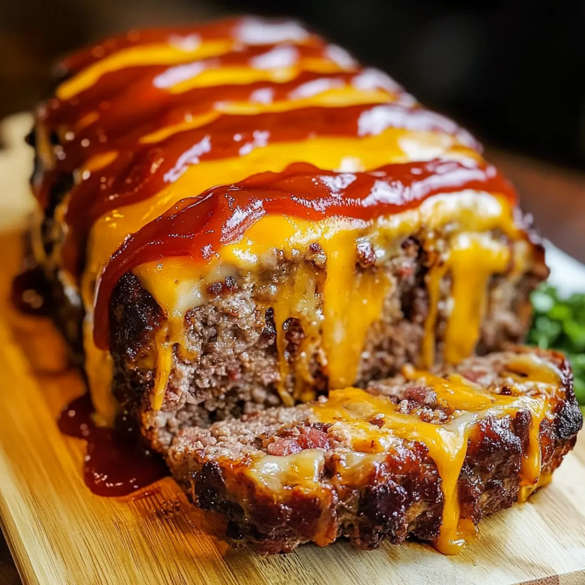 Once baked, remove the Cheeseburger Meatloaf from the oven and let it rest for about 10 minutes. This resting period allows the juices to redistribute, ensuring each slice remains moist and flavorful. After resting, slice into thick portions to reveal layers of melty cheese and crispy bacon, and enjoy the comforting taste of this delightful dish.