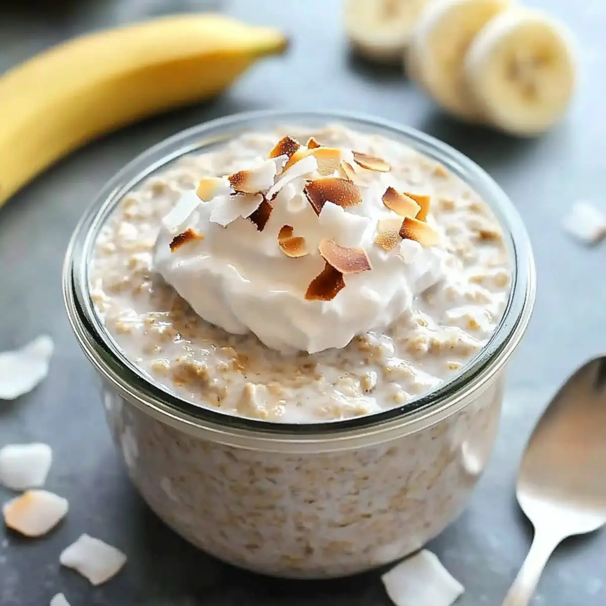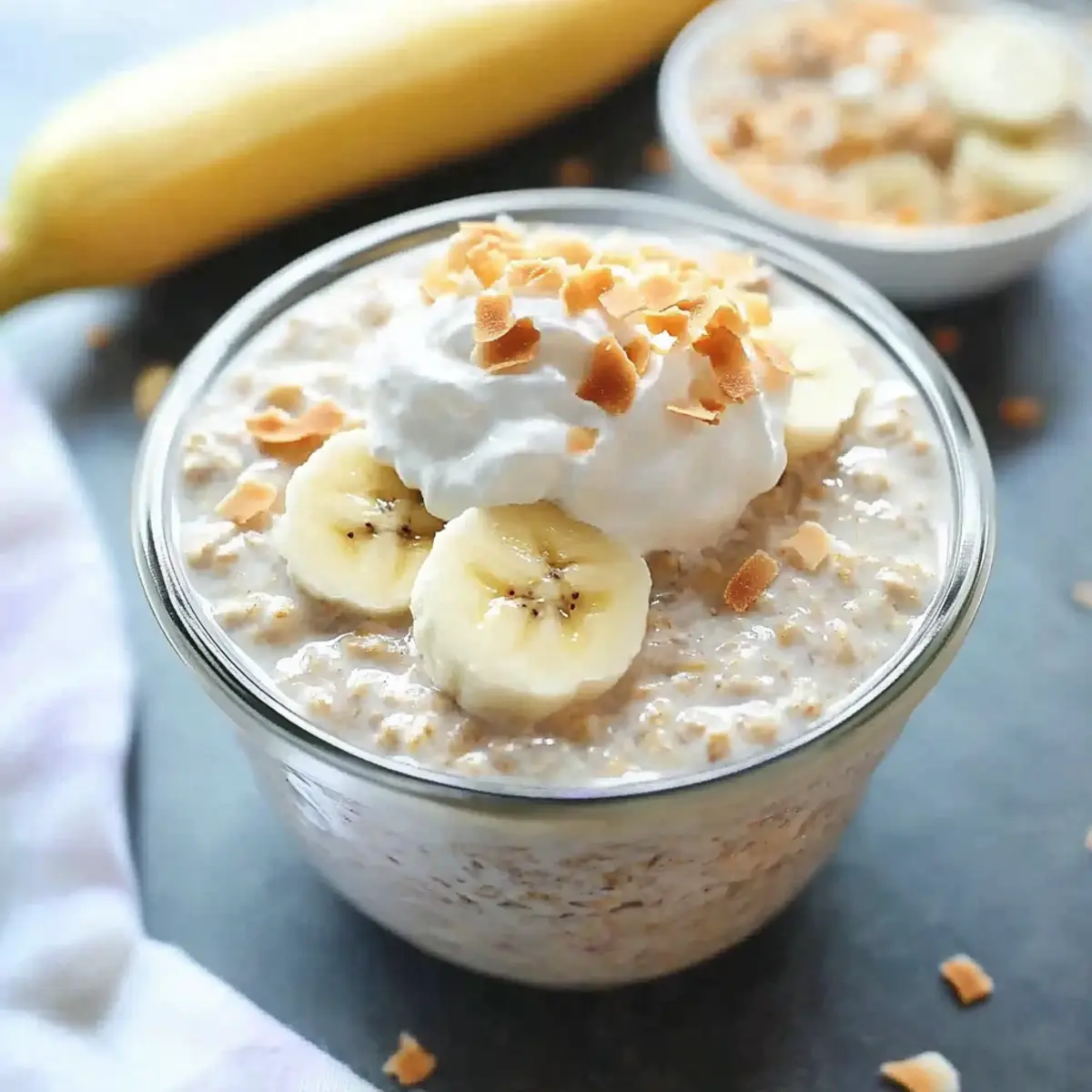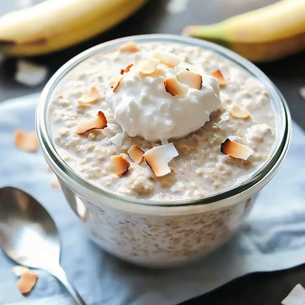 These Coconut Cream Pie Overnight Oats are a fantastic meal prep option for busy mornings! You can prepare the entire mixture up to 3 days in advance, simply combine the rolled oats, coconut milk, Greek yogurt, shredded coconut, maple syrup, and vanilla in jars, seal them, and refrigerate. This saves valuable time during hectic weekdays while ensuring you wake up to a delicious and creamy breakfast that’s just as indulgent as it sounds. When you’re ready to enjoy your oats, give them a quick stir, and top with fresh sliced bananas, whipped cream, or additional shredded coconut before serving. This way, you’ll maintain the delightful texture and flavor of your Coconut Cream Pie Overnight Oats!