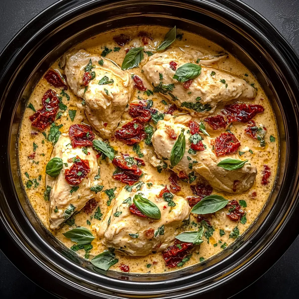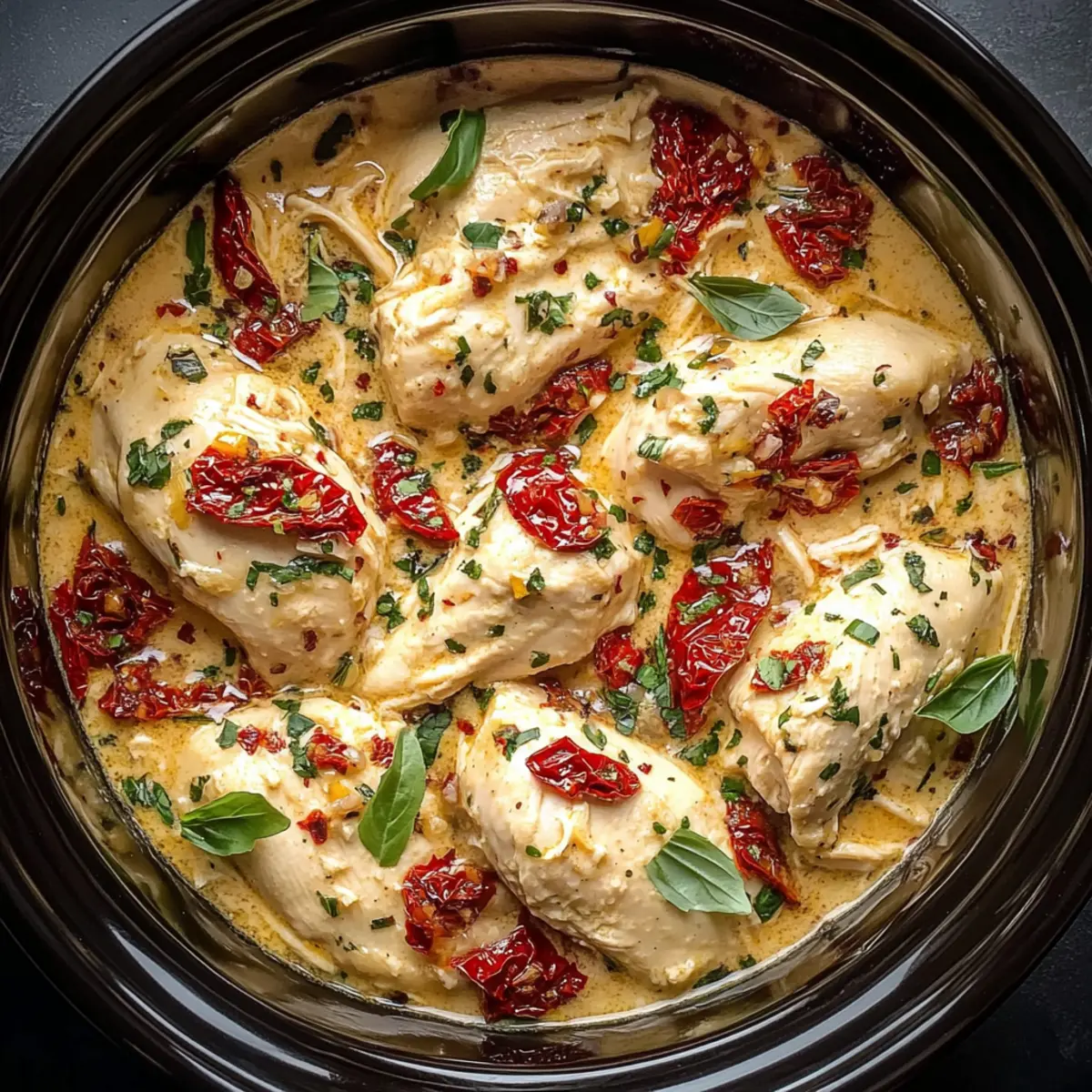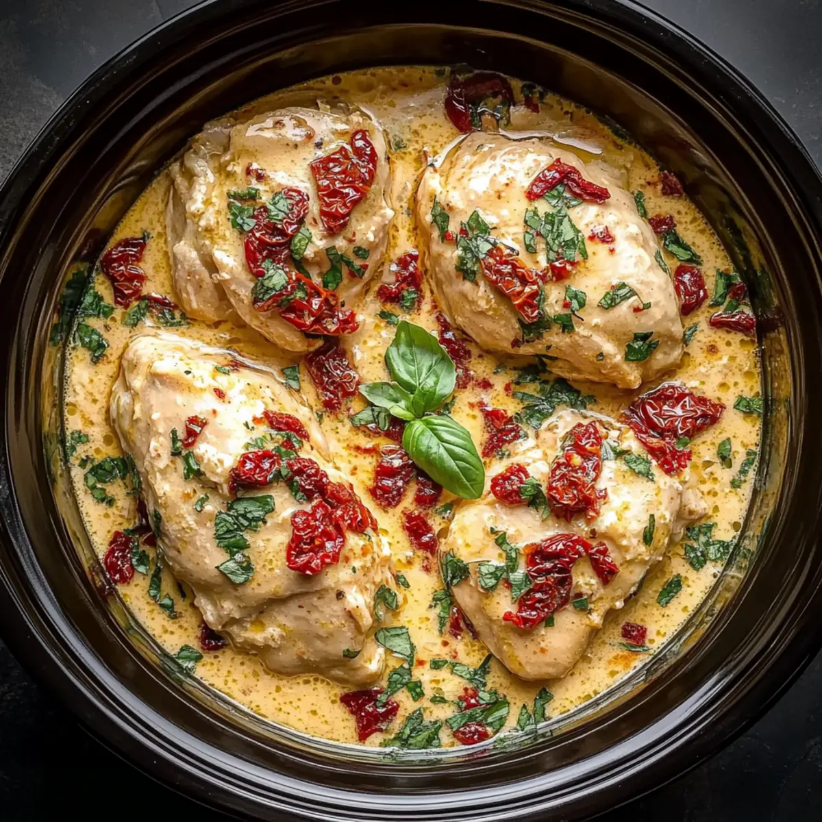 Once the sauce is ready, turn off the slow cooker, and gently fold in the chopped fresh basil for that fragrant kick. Let the dish sit for 5-10 minutes with the lid on; this allows the sauce to thicken slightly, enhancing the overall richness of your Crockpot Marry Me Chicken.
