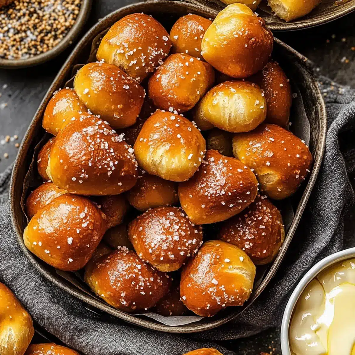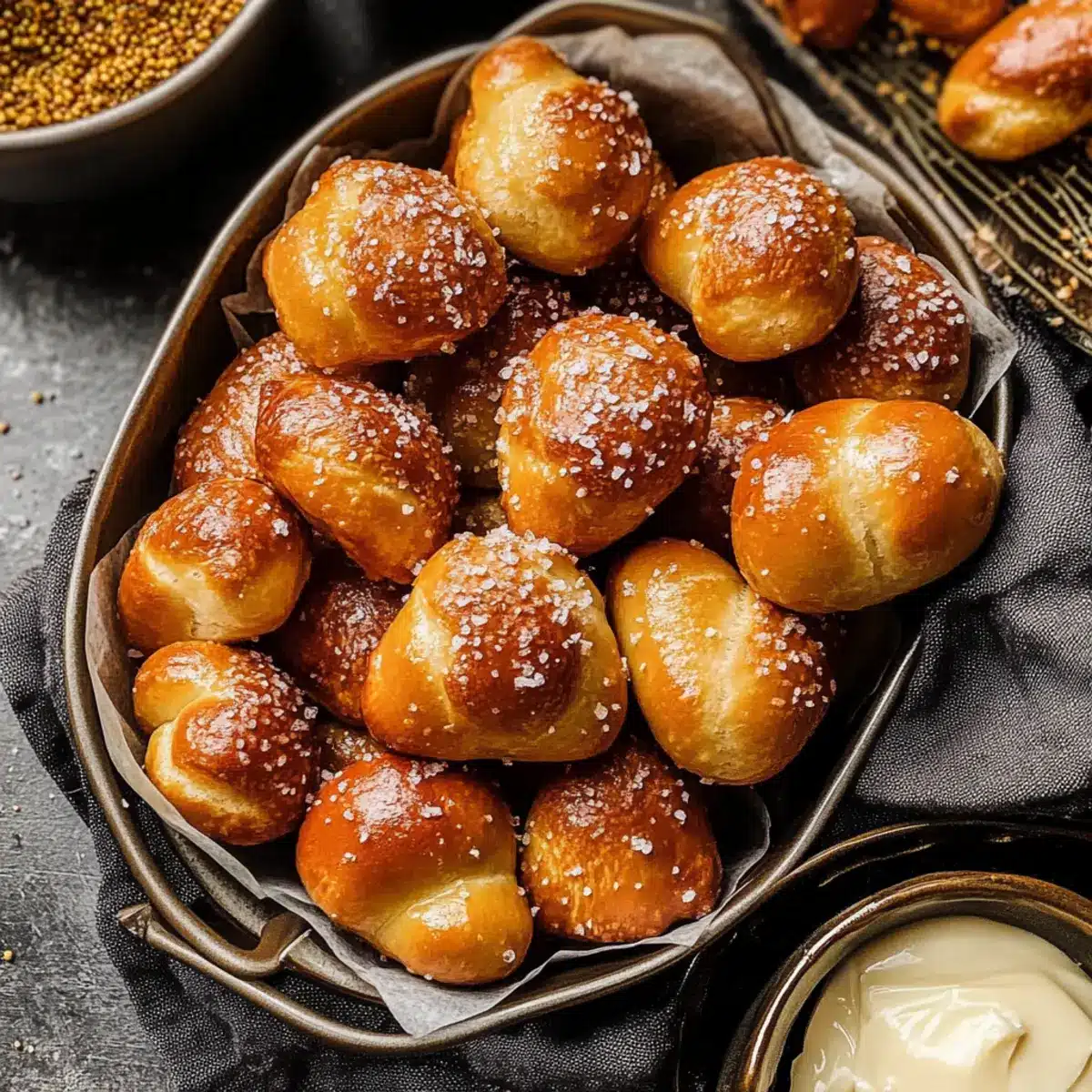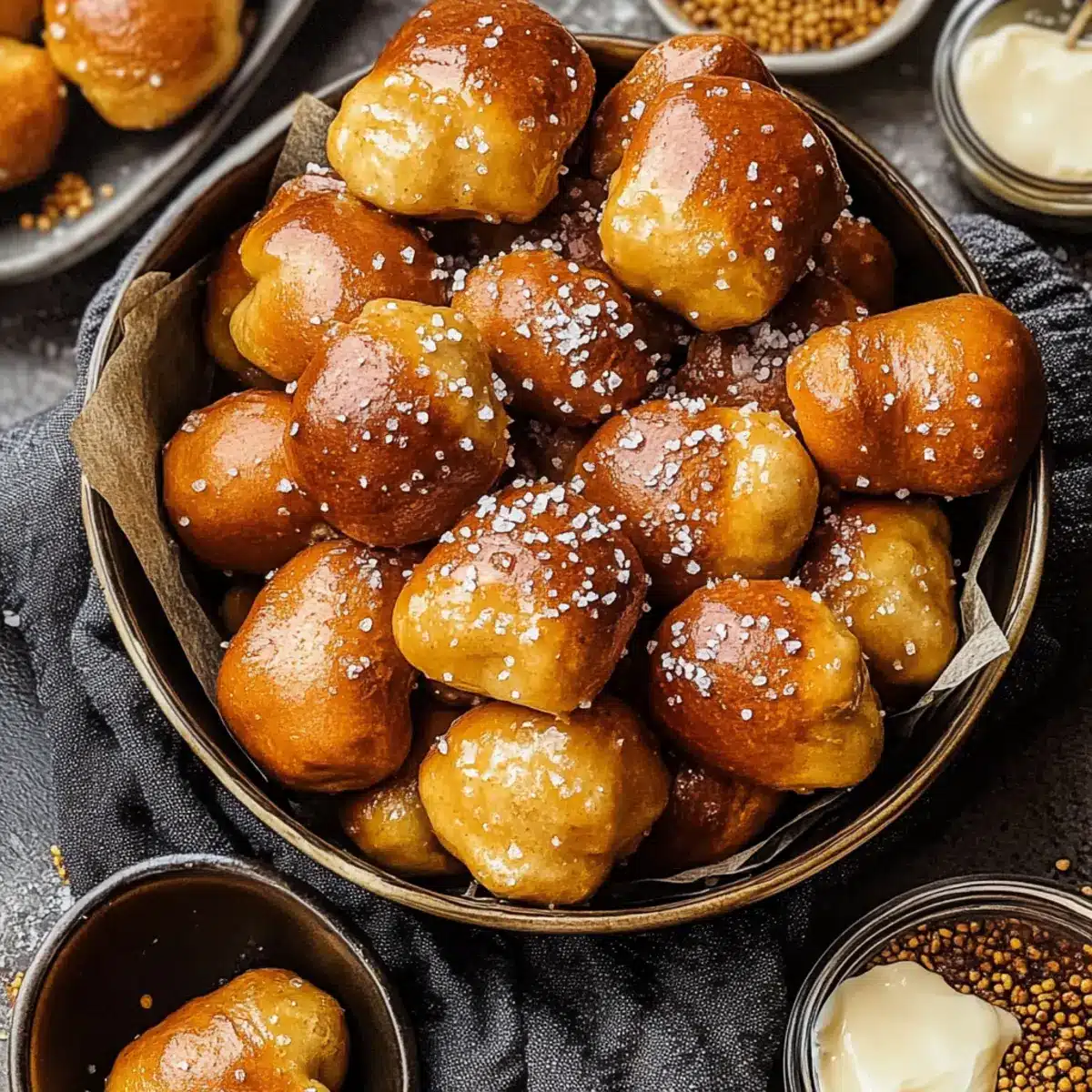 Serve these warm and golden pretzel bites with a variety of dips like mustard, ranch dressing, or even homemade cheese sauce. The flavors can really shine through and offer a delightful snack experience, perfect for gatherings or movie nights!