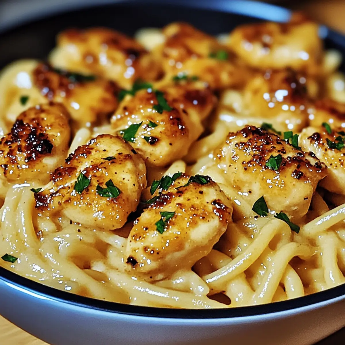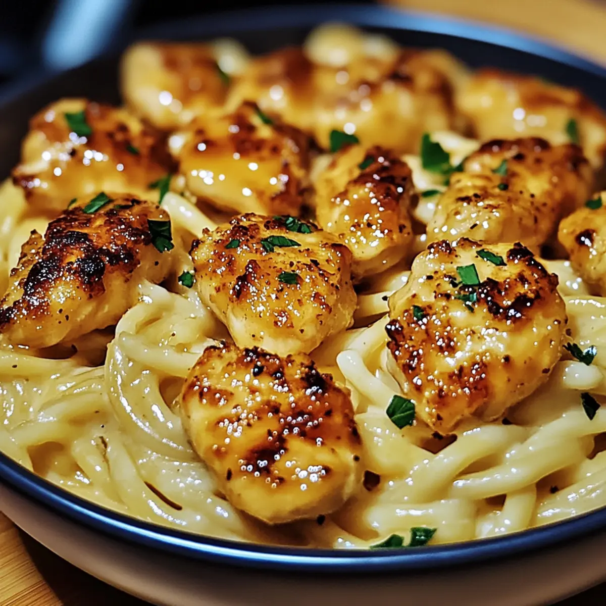 These Garlic Butter Chicken Bites with Savory Creamy Parmesan Pasta are a meal prep dream come true! You can prepare the chicken and sauce up to 24 hours in advance; just cook the chicken and make the sauce as instructed, then refrigerate them in airtight containers to maintain freshness. To ensure the chicken stays juicy, allow it to cool completely before sealing. When you’re ready to serve, simply reheat the chicken and sauce gently in a skillet over low heat, adding a splash of cream or pasta water if needed. Toss in freshly cooked pasta for a deliciously convenient dinner that fits into your busy schedule!