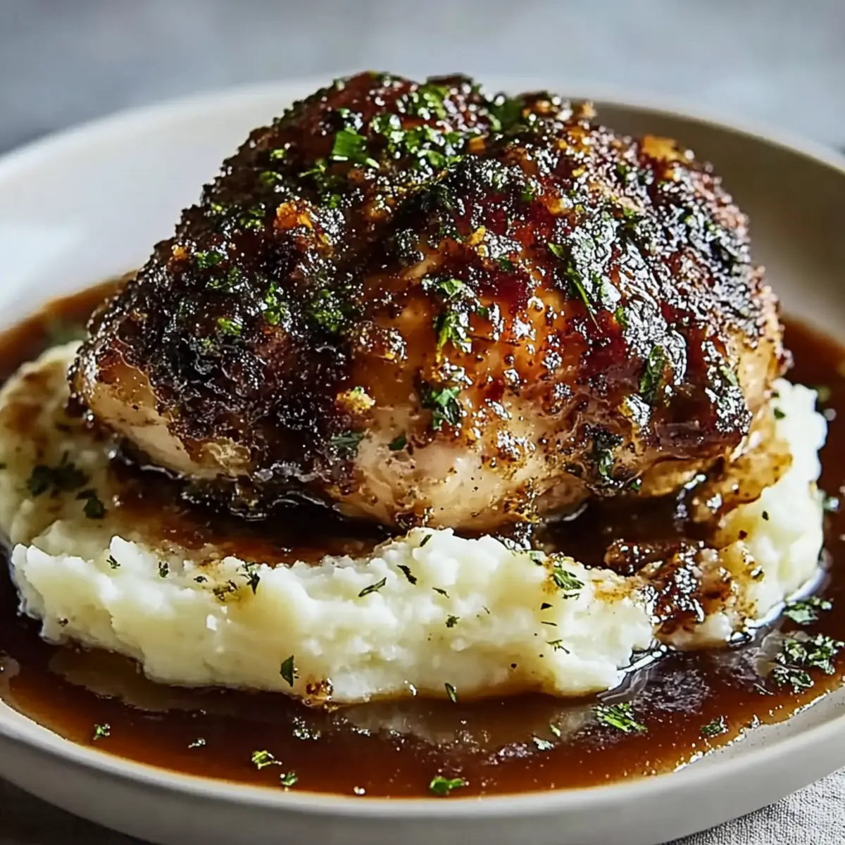 The sound of sizzling chicken can instantly transform any ordinary evening into something special. As the Garlic Herb Chicken with Sticky Glaze dances in the skillet, its rich aroma envelops the kitchen, promising a mouthwatering meal that beckons loved ones to gather around the table. This dish is not only a comforting delight but also a versatile option perfect for any occasion—from cozy family dinners to impressing friends during gatherings. It’s gluten-free and can be created in under an hour, making it a go-to for home chefs craving something delicious without a long prep time. Picture juicy, herbed chicken resting on a bed of creamy mashed potatoes, all artfully glazed with a sweet and tangy sauce—who could resist? What’s your favorite side to pair with a heartwarming meal like this?