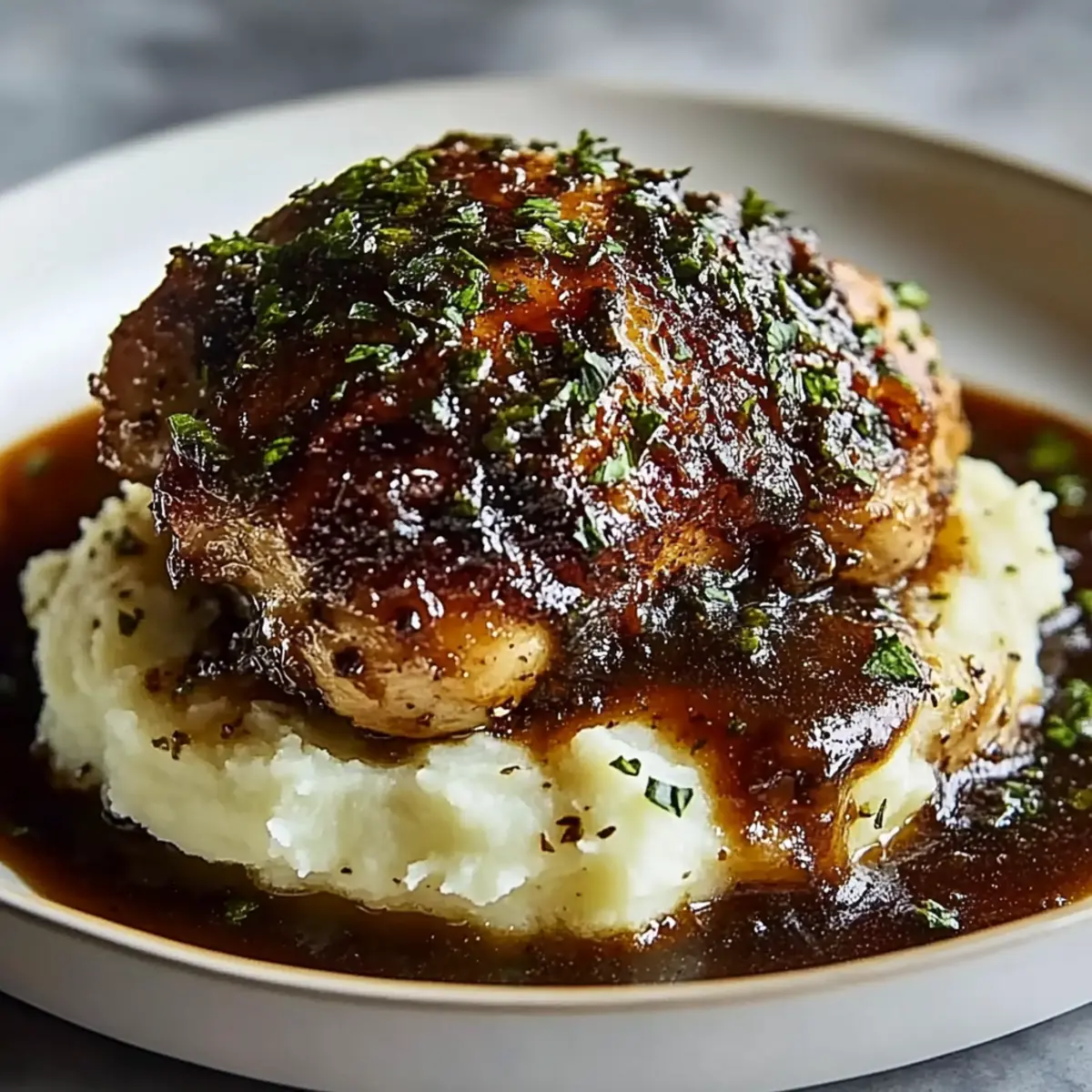 These Garlic Herb Chicken with Sticky Glaze are perfect for busy home cooks looking to save time without sacrificing flavor! You can season and sear the chicken up to 24 hours in advance; simply refrigerate it after cooking to maintain its juiciness. The mashed potatoes can also be made ahead and stored in an airtight container for up to 3 days, but for the best texture, reheat them on the stove with a splash of cream. When ready to serve, reheat the chicken gently and make the pan sauce fresh to ensure it remains just as delicious. With a little prep, you’ll have an impressive meal ready in no time!