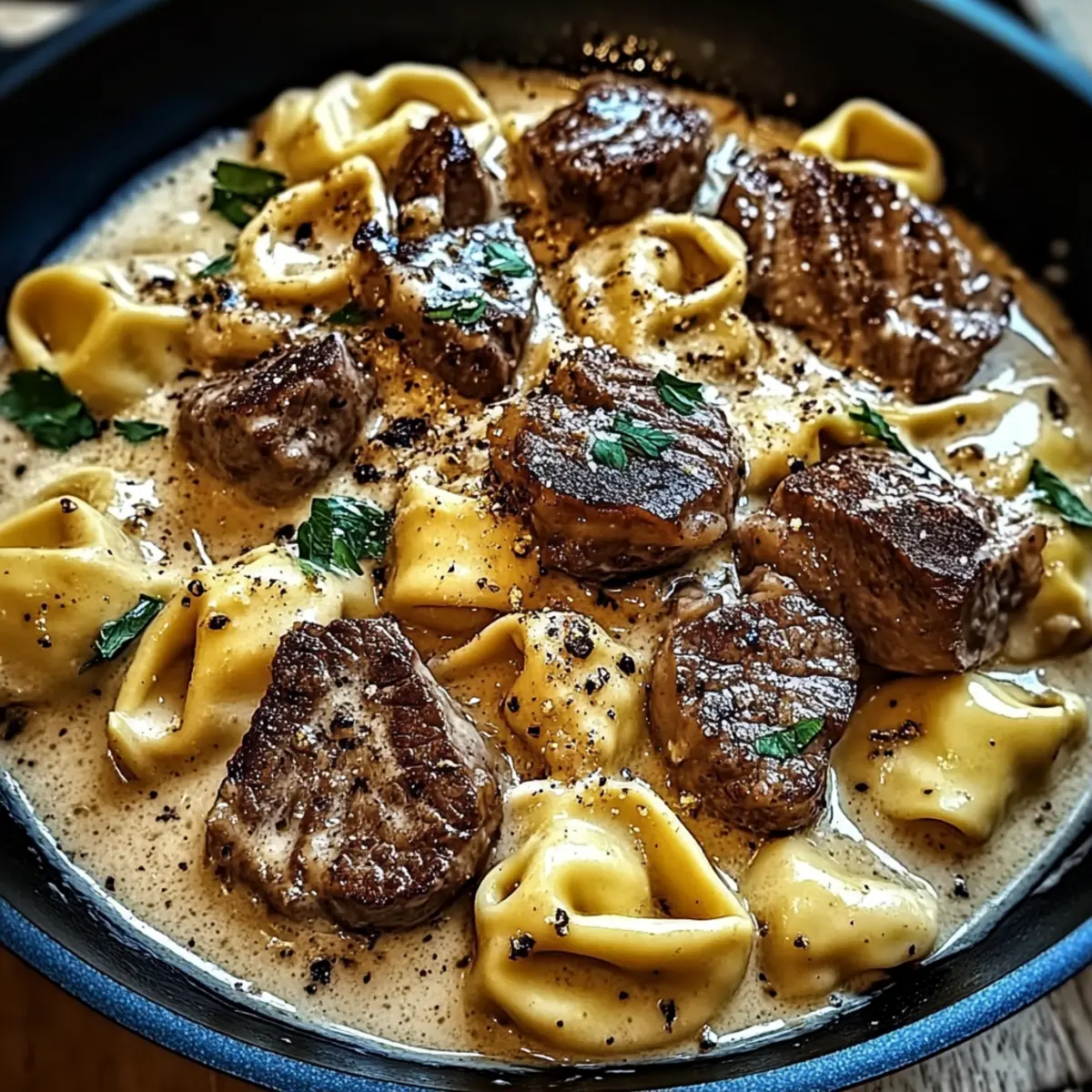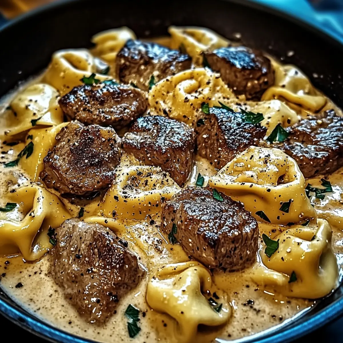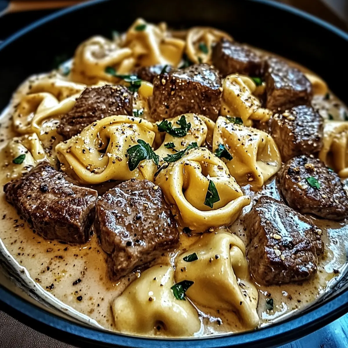 Savory Garlic Steak Tortellini in Creamy Heaven