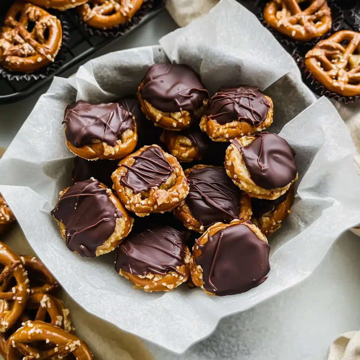 - Chill to Set: Refrigerate the chocolate-covered pretzel bites for about one hour until chocolate is hard.