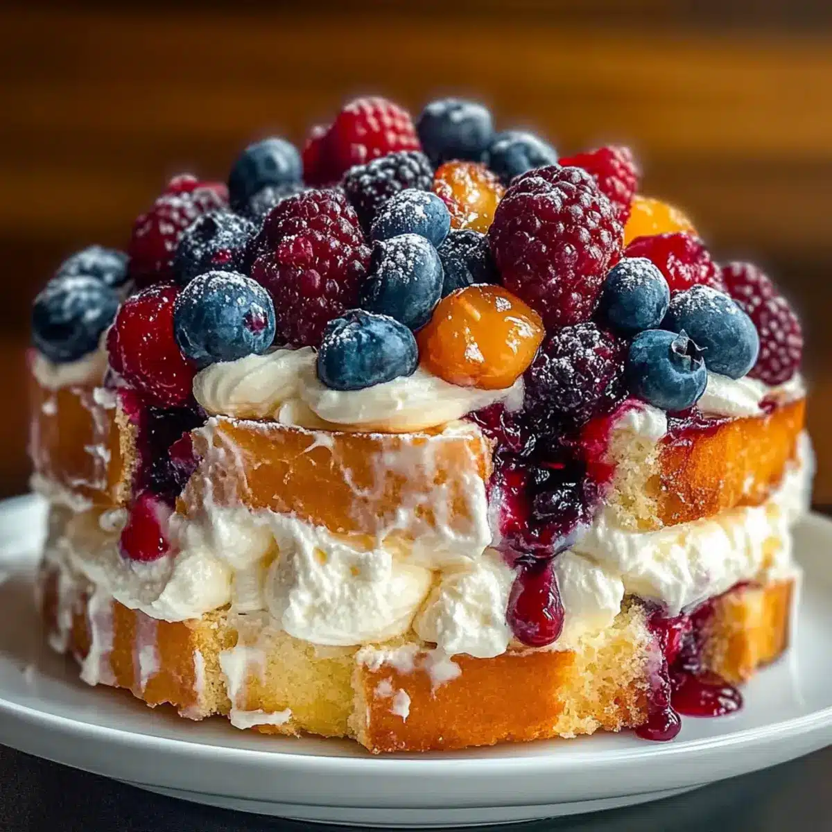 Flavor explosion: The combination of fluffy angel food cake, creamy vanilla pudding, and vibrant mixed berries creates a symphony of taste that’s simply unforgettable.