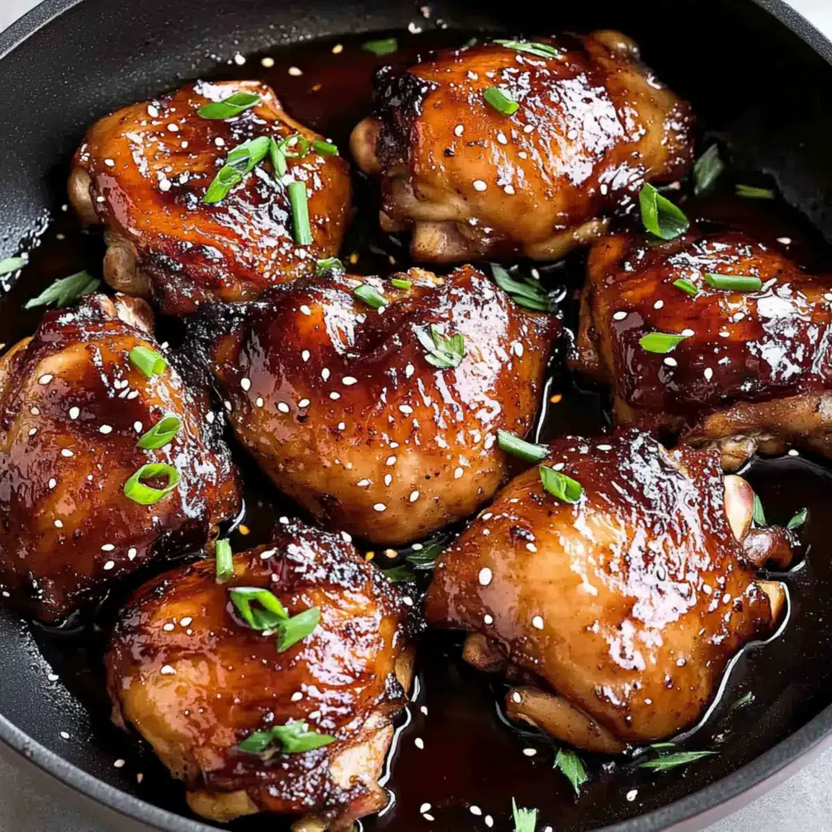 After broiling, carefully remove the chicken from the oven and let it rest for a few minutes. Garnish with freshly chopped parsley and sprinkle with sesame seeds if desired, adding a burst of color and aromatic freshness. Serve your Honey Soy Baked Chicken Thighs over rice or alongside your favorite veggies for a complete meal.
