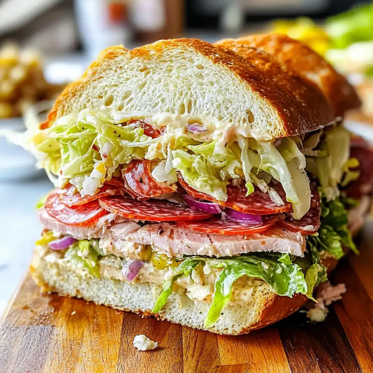 Fresh Ingredients: Use crisp, fresh vegetables for the best texture. Soggy ingredients can dampen the delightful crunch in your Italian Grinder Salad Sandwich.