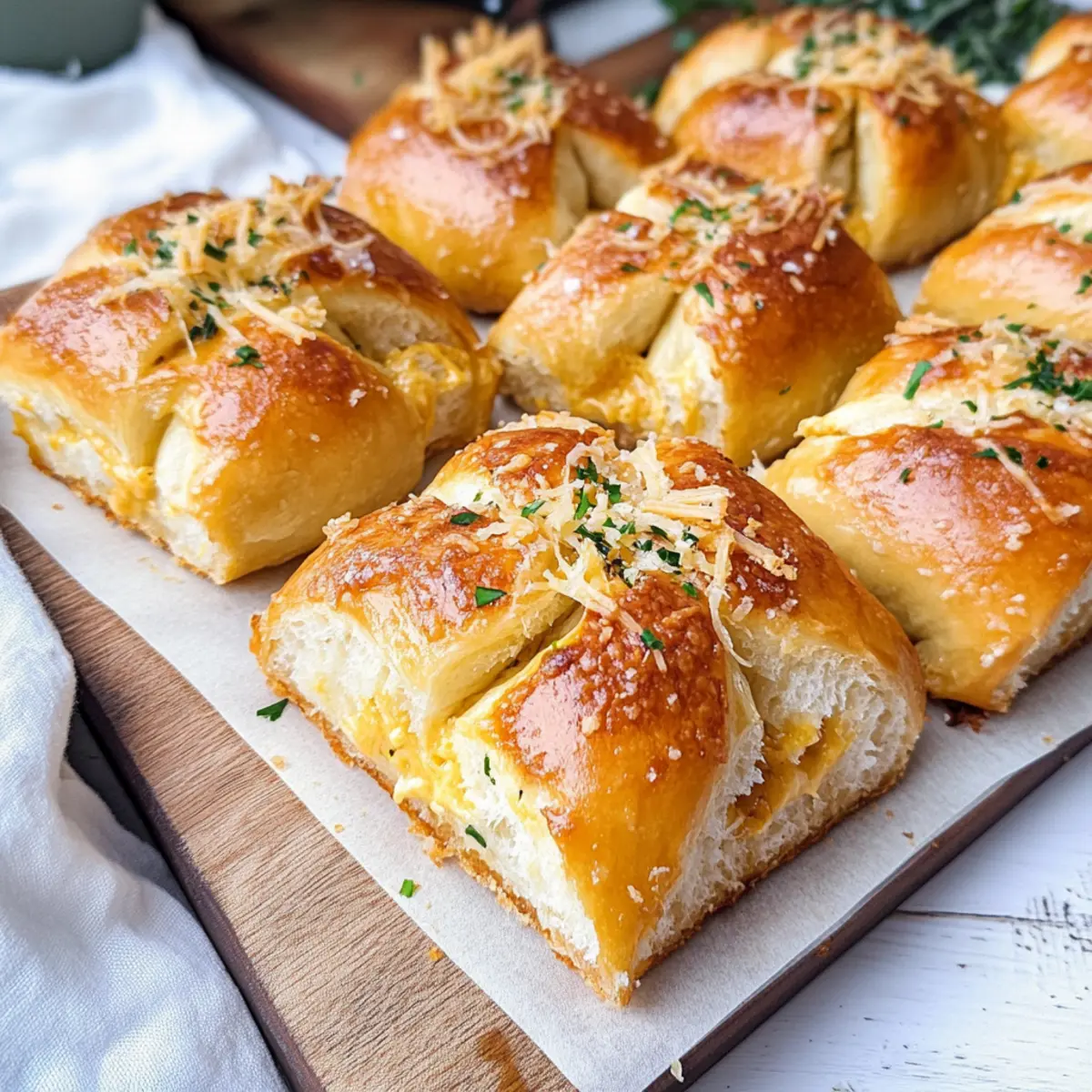 The aroma hit me like a warm hug, transporting me straight into the heart of a bustling Korean bakery. Today, I’m excited to share my take on Korean Cream Cheese Garlic Buns—an irresistible fusion of flavors that transforms ordinary garlic bread into something truly extraordinary. These buns feature a heavenly sweet cream cheese filling, enveloped in fluffy rolls and topped with creamy garlic custard that’s simply unforgettable. Not only are they a show-stopping dish for gatherings, but they also boast a quick prep time, making them perfect for a cozy night in. Plus, they’re incredibly versatile—feel free to swap out the Hawaiian rolls for brioche sliders if you prefer a different texture. Ready to impress your family and friends with this delightful treat? Let’s dive into the recipe and unlock this flavor sensation together!