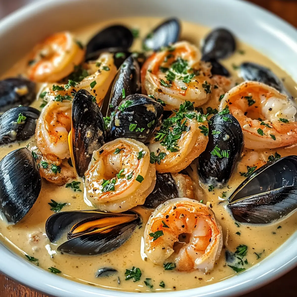Indulgent flavors await in this creamy sauce that expertly blends garlic, white wine, and a splash of lemon. Quick preparation means you’ll spend less time cooking and more time enjoying. Impressive presentation transforms your dinner table into a gourmet experience, perfect for hosting. Versatile serving options allow pairing with pasta, rice, or crusty bread for maximum delight. Health-forward with a rich protein boost from shrimp and mussels, this recipe is as nourishing as it is delicious. Dive into an unforgettable meal that feels like a coastal getaway any night of the week!