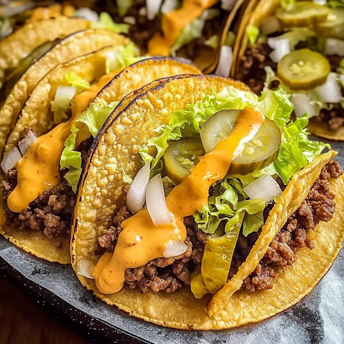 Preparing Smash Burger Tacos in advance is a fantastic way to streamline your mealtime experience! You can prep the ground beef filling (seasoned and portioned) up to 24 hours in advance; just store it in an airtight container in the refrigerator. Additionally, you can combine your burger sauce ingredients and refrigerate them overnight for a time-saving flavor boost. When you’re ready to enjoy these delicious tacos, simply heat a skillet, cook the beef on tortillas as outlined, and add your cheese until melted. This way, you’ll savor the same juicy and cheesy delight without the last-minute rush, making dinner time a breeze!
