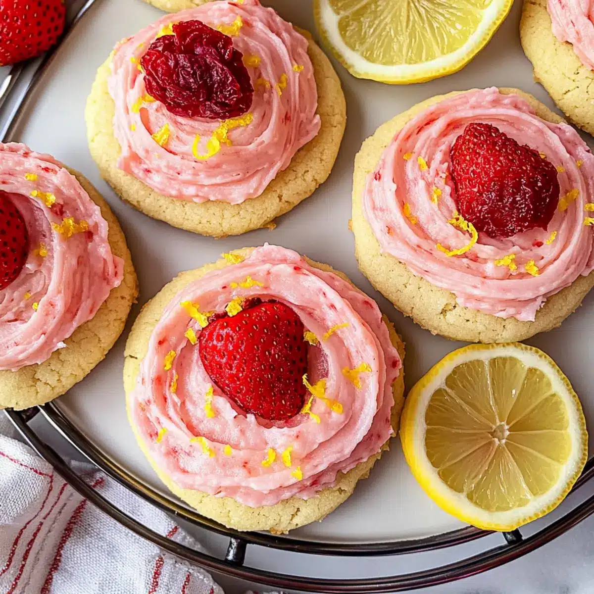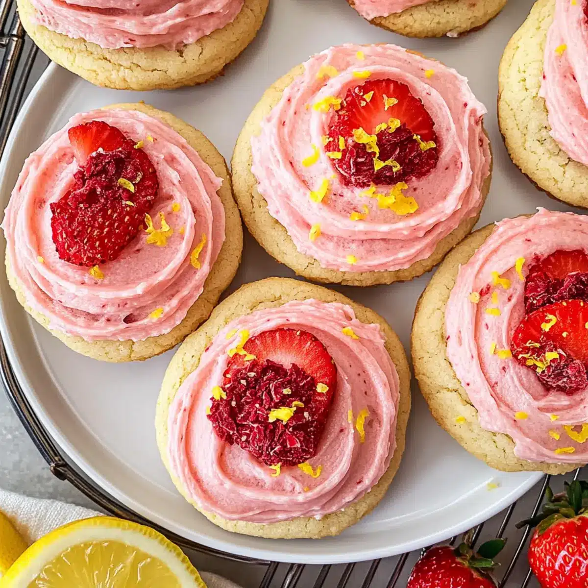The moment I heard the ice cream truck jingle wafting through the summer air, a wave of nostalgia swept over me, transporting me back to carefree childhood days. The tantalizing blend of strawberry and lemon was a staple during those sun-soaked afternoons, inspiring my creation of Strawberry Lemonade Cookies. These delightful treats capture that same vibrant flavor profile, combining fresh strawberries and zesty lemons in every chewy bite. Not only are they a fun and refreshing dessert that brightens any occasion, but they’re also incredibly easy to whip up, making them a perfect go-to for impromptu summer gatherings. Imagine serving these at your next picnic, where they’ll undoubtedly steal the show! Curious about how to bring a slice of summer into your kitchen? Let’s bake these scrumptious cookies together!