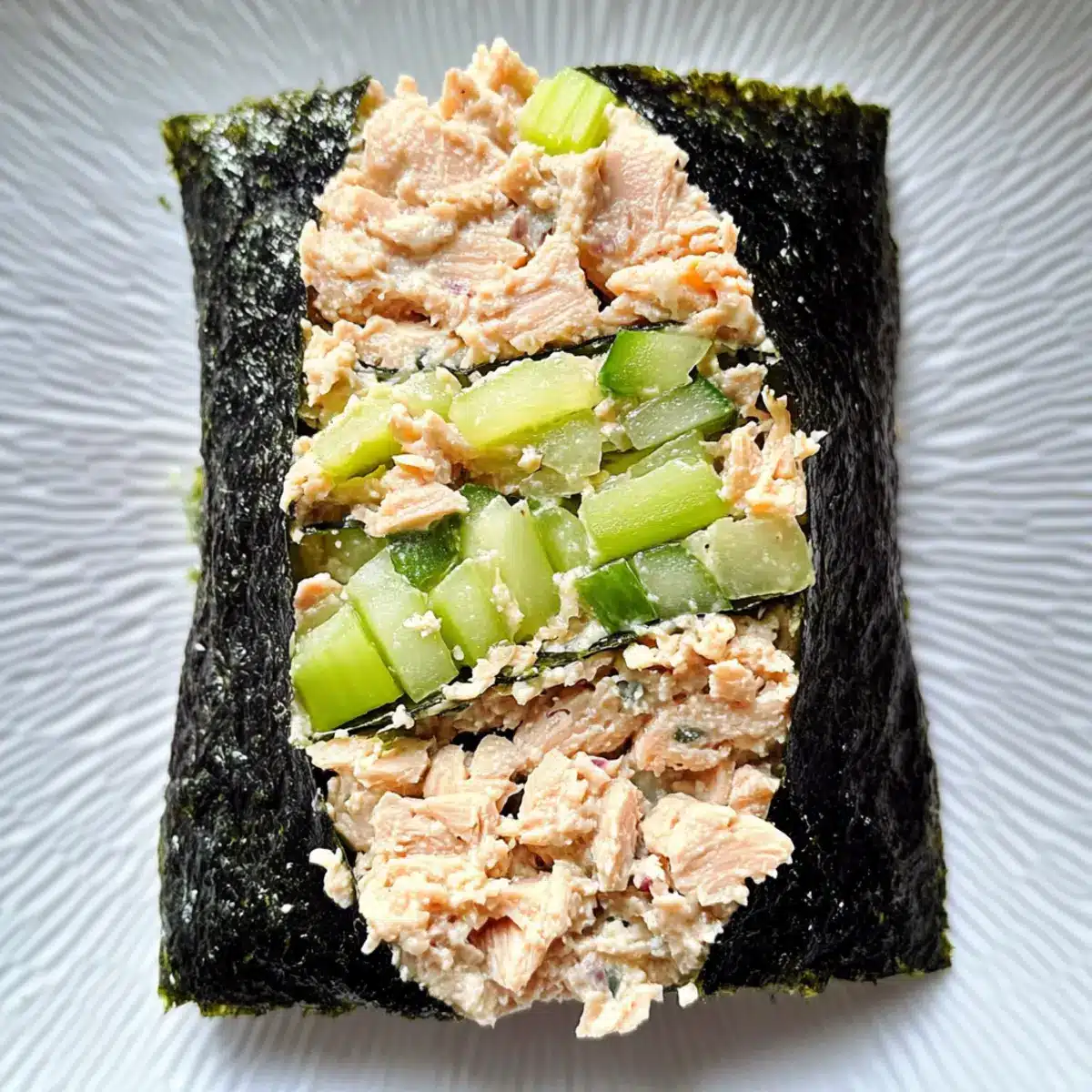 Crunchy and Creamy: The contrast between the soft nori and the creamy tuna salad is delightful.