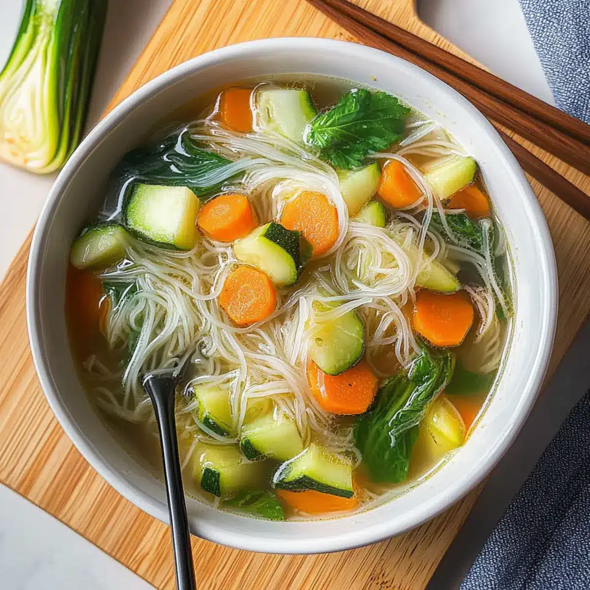 As the rain pattered against my window, I found myself craving something warm and revitalizing—a dish that wraps around you like a cozy blanket. Enter my 20-Minute Vegan Vegetable Noodle Soup, a quick comfort food that’s as nourishing as it is satisfying. With vibrant vegetables and delicate rice vermicelli noodles, this recipe is perfect for those hectic weeknights when you need a hearty meal without the fuss, or for moments when you’re under the weather seeking solace in a bowl. Not only is this soup effortlessly healthy, but it turns cooking into a delightful experience that transforms fresh ingredients into a steaming, flavorful masterpiece. Curious how this simple combo can lead to so much joy in your kitchen? Let’s dive in!